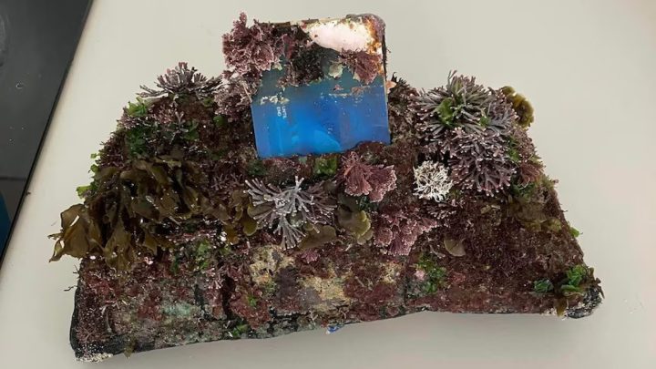 “Estava coberta de algas marinhas rosadas e verdes e algumas pequenas conchas que começaram a crescer nela… ficou muito bonita, parece um pequeno jardim oceânico”, destacou.