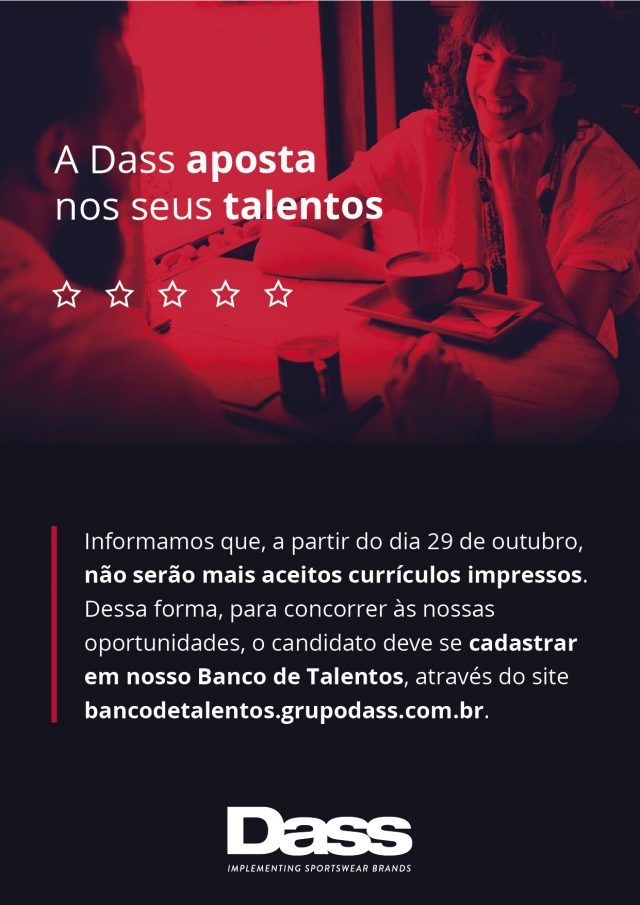 De acordo com a Dass, a partir desta segunda-feira (29), para concorrer às oportunidades de emprego, os interessados devem se cadastrar no Banco de Talentos através do site bancodetalentos.grupodass.com.br