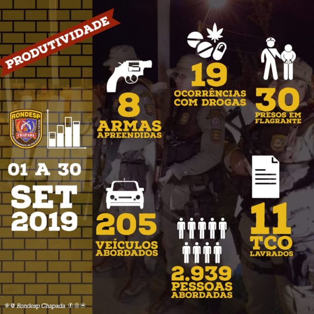 A Rondesp Chapada divulgou na noite desta quinta-feira (03), os números relativos à produtividade operacional no período de 01 a 30 de setembro de 2019. Itaberaba Notícias