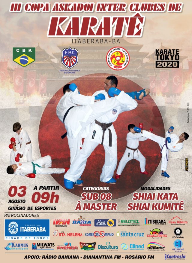 Acontece em Itaberaba, no dia 03 de agosto, a III Copa Ascadoi Inter Clubes de Karatê.