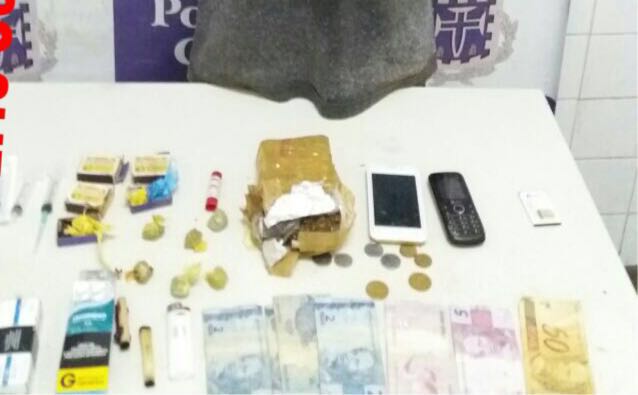 Em seguida a equipe conseguiu também prender em flagrante Eric que estava com um tablete de maconha prensada, trouxinhas prontas para a venda e material pata embalar driga.