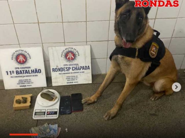 A prisão ocorreu em ação conjunta da 1ª Cia/11°BPM e RONDESP/Chapada, tendo auxílio crucial da cadela Keith, que encontrou a droga em uma residência.