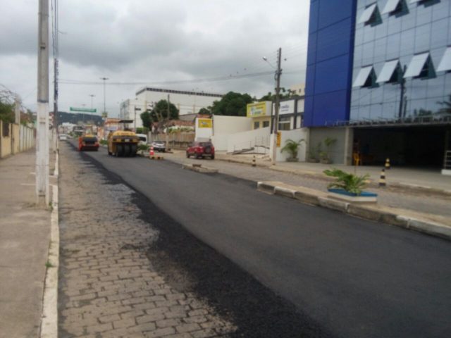 O asfalto da avenida Rio Branco começou avançar na manhã deste sábado (26) em Itaberaba.