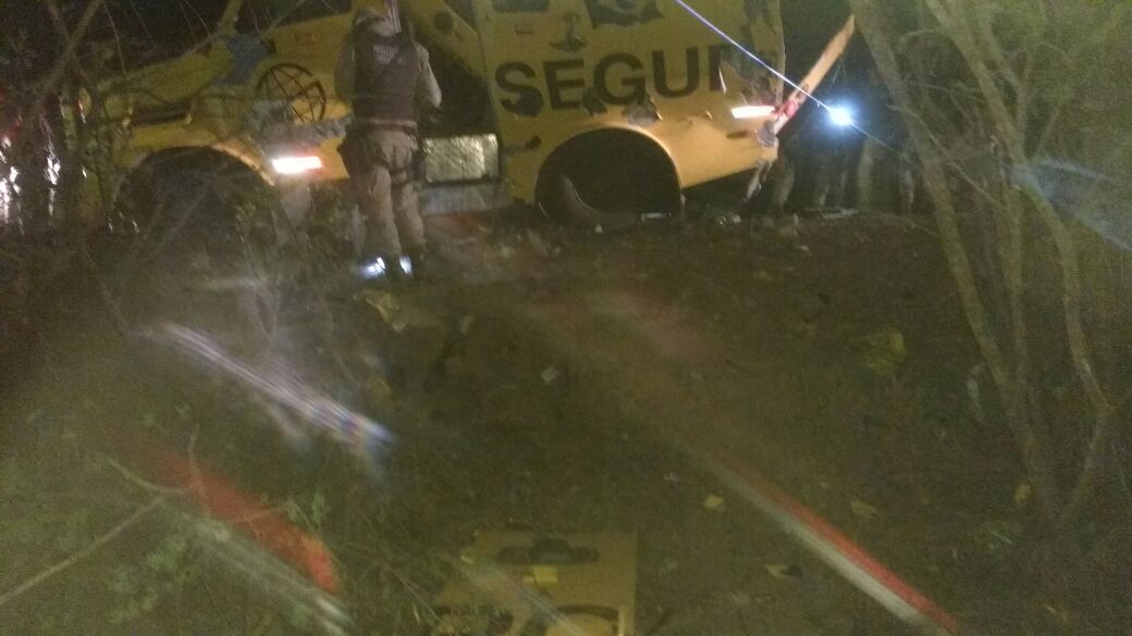 O oficial detalhou que o ataque aconteceu por volta das 18h, quando homens armados a bordo de dois veículos obrigaram um dos seguranças a parar o carro de valores na rodovia. Depois, os criminosos explodiram o veículo, que ficou completamente destruído. O carro-forte pertence à empresa Prosegur.