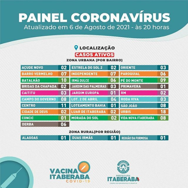 A Prefeitura de Itaberaba, por meio da Secretaria Municipal da Saúde, informa o boletim diário de sexta-feira (06) com dados consolidados até as 17h.