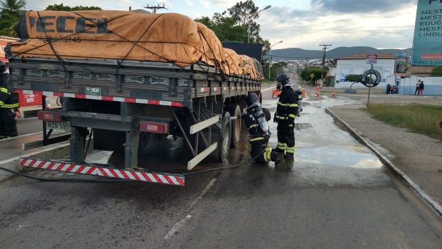 Uma guarnição do 11° Grupamento de Bombeiros Militar (11°GBM/Itaberaba) debelou um principio de incêndio numa carreta carregada de fertilizantes nesta quinta-feira (17) em Itaberaba. A guarnição chegou rápido e atuou de forma célere evitando que as chamas se alastrassem.