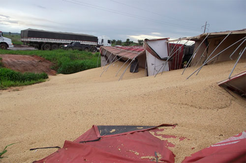 A carreta carregada com 50 toneladas de soja saiu de uma fazenda na região de Placas e tinha como destino a Bunge Alimentos.