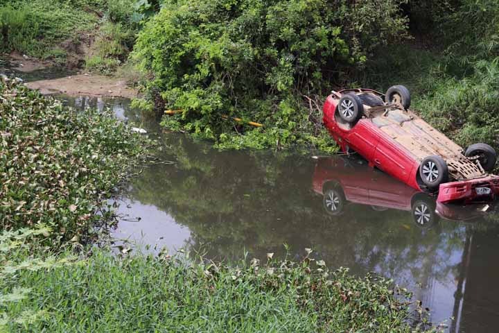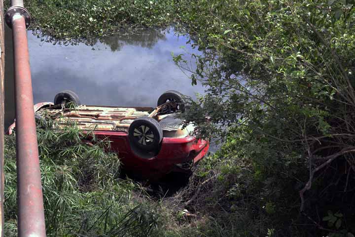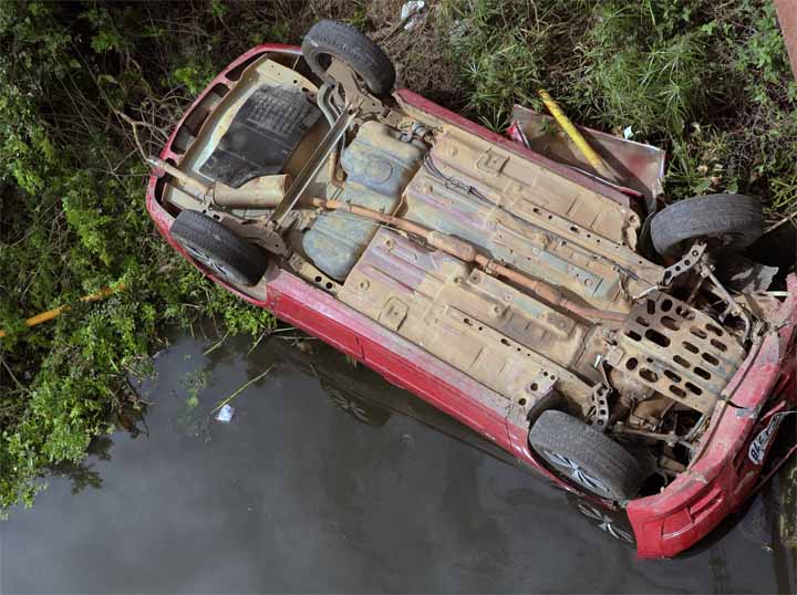 O acidente ocorreu no inicio da manhã deste domingo e o veículo ficou parcialmente submerso.