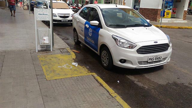 Carro da Prefeitura de Itaberaba é flagrado obstruindo rampa de acessibilidade