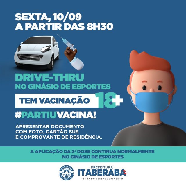As vacinas já estão disponíveis, para pessoas com 18 anos ou mais, no drive-thru, no Ginásio de Esportes, para primeira e segunda doses.