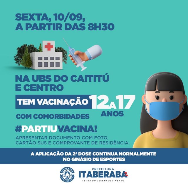 Pessoas com idades entre 12 e 17 anos com comorbidades, gestantes e imunossuprimidos, podem tomar a vacina nas unidades do Centro e Caititu.