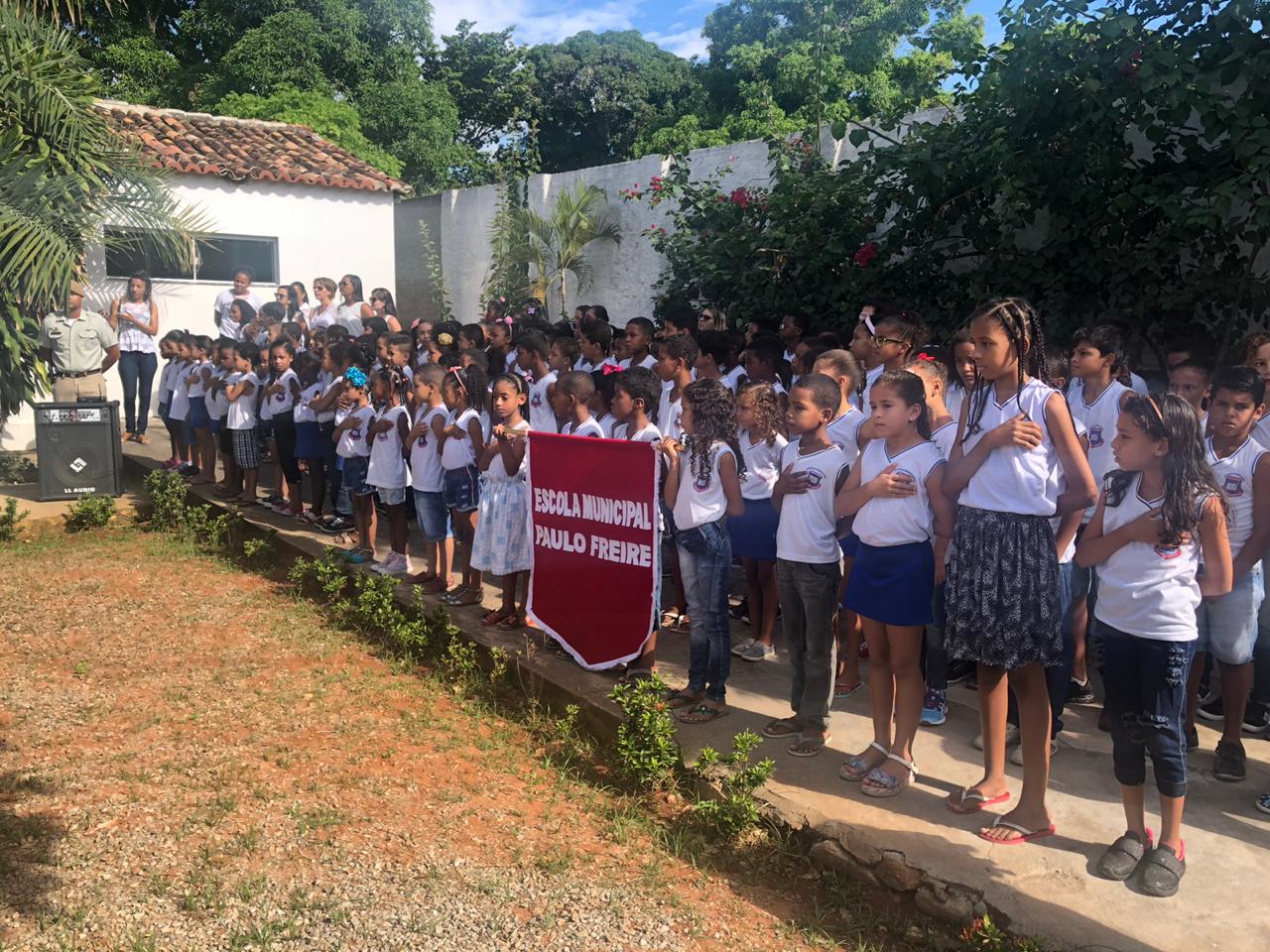 Foi realizado o hasteamento do Pavilhão Nacional, momento este, que juntamente com docentes e discentes da Escola Municipal Paulo Freire e a representante da Secretária de Educação entoaram o Hino Nacional, Hino da Bahia e o Hino do Município de Itaberaba.