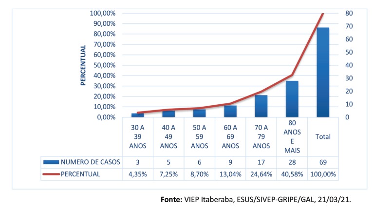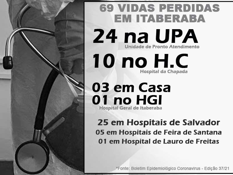 De acordo com o boletim das 69 mortes registradas, 38 ocorreram em Itaberaba e outras 31 ocorreram em UTIs Covid reguladas em outros municípios.