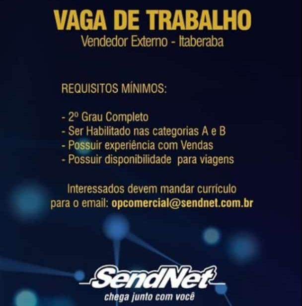 A Sendnet, empresa no setor de internet, está com vaga de emprego para Vendedor Externo em Itaberaba.