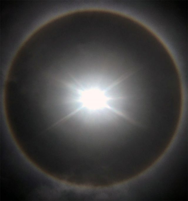A aparição do halo solar virou assunto nas redes sociais e foi observado no céu de várias cidades na região.