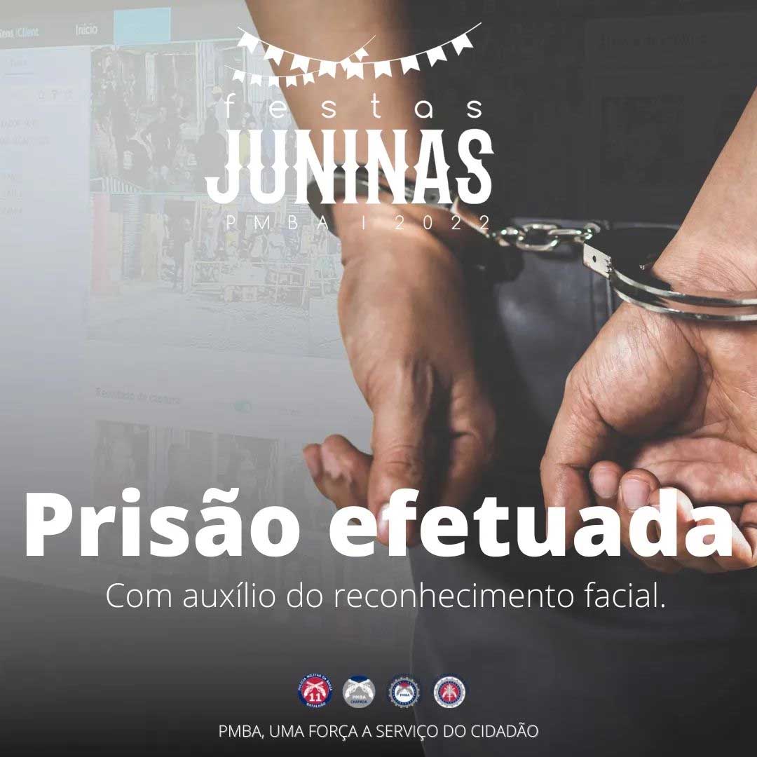 Um homem, que estava com mandado de prisão em aberto, foi preso, com auxílio do sistema de reconhecimento facial instalado no circuito do São João de Itaberaba.