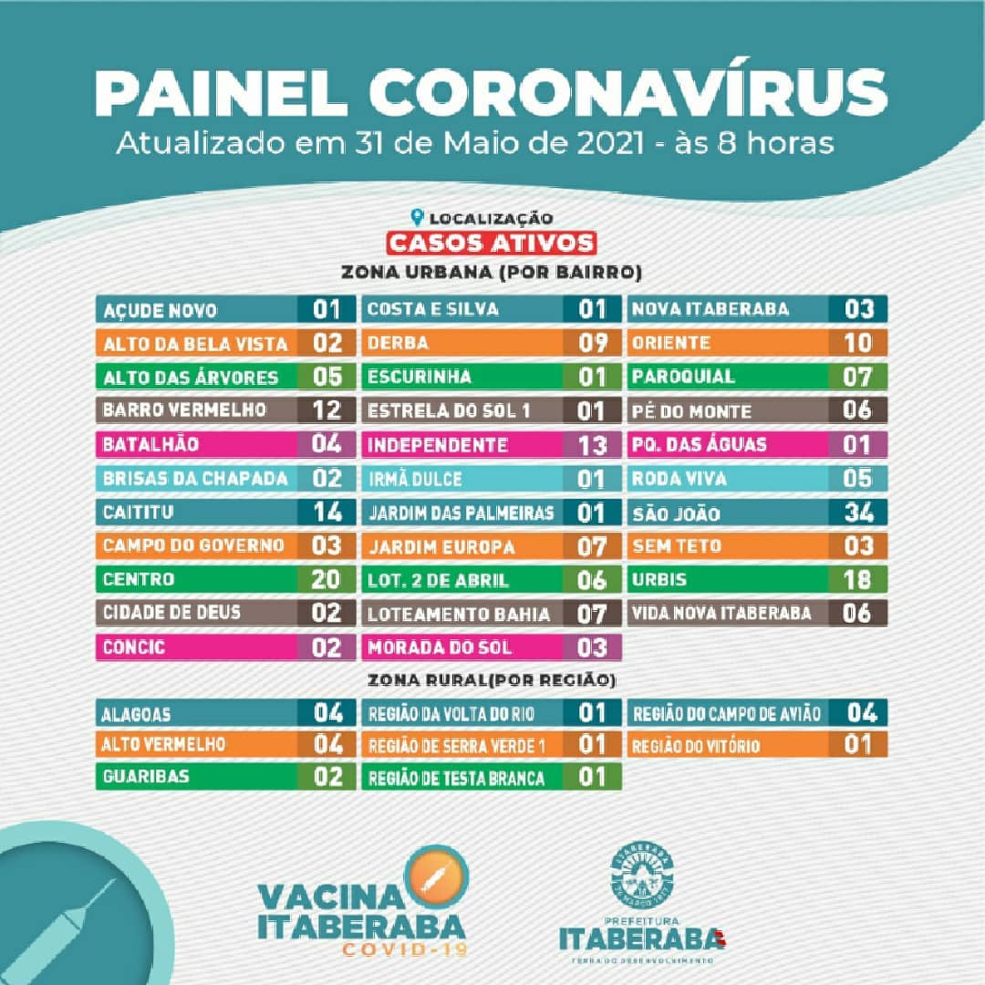 Itaberaba atingiu a triste marca de 100 vidas perdidas para a pandemia de coronavírus. A informação foi divulgada, na manhã desta segunda-feira (31) pela Prefeitura, no Boletim epidemiológico.