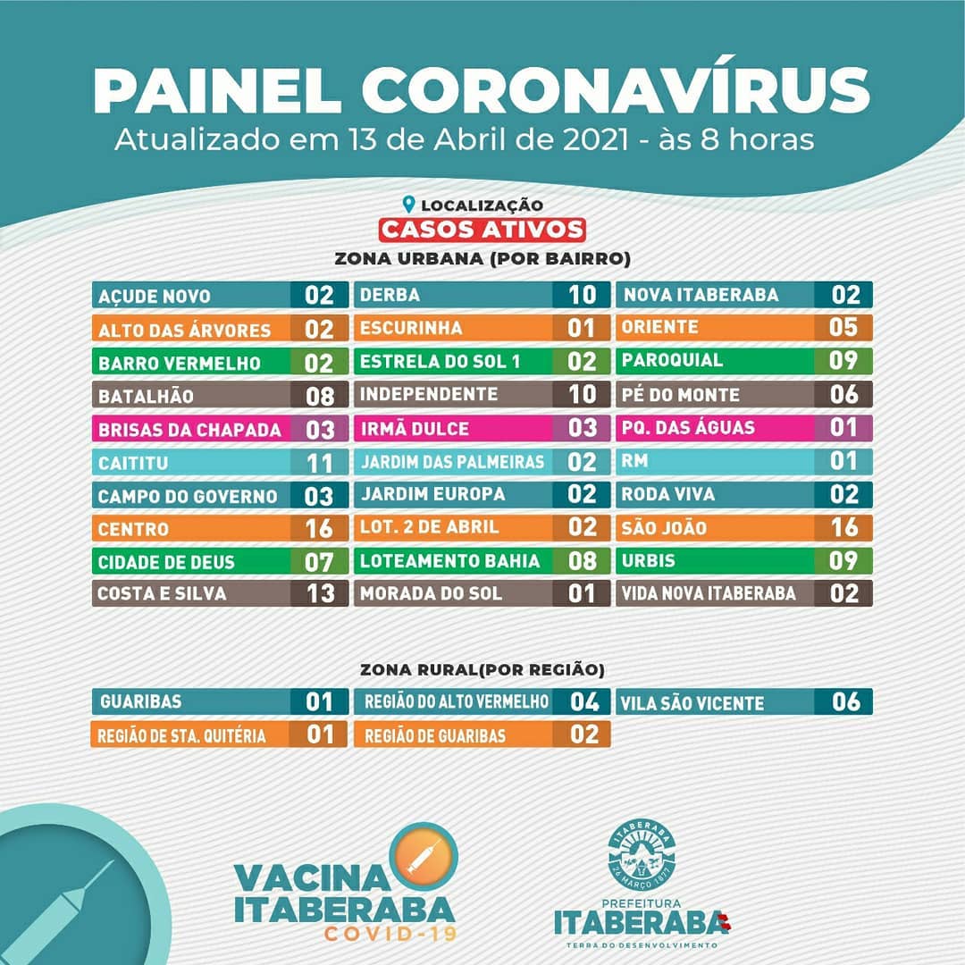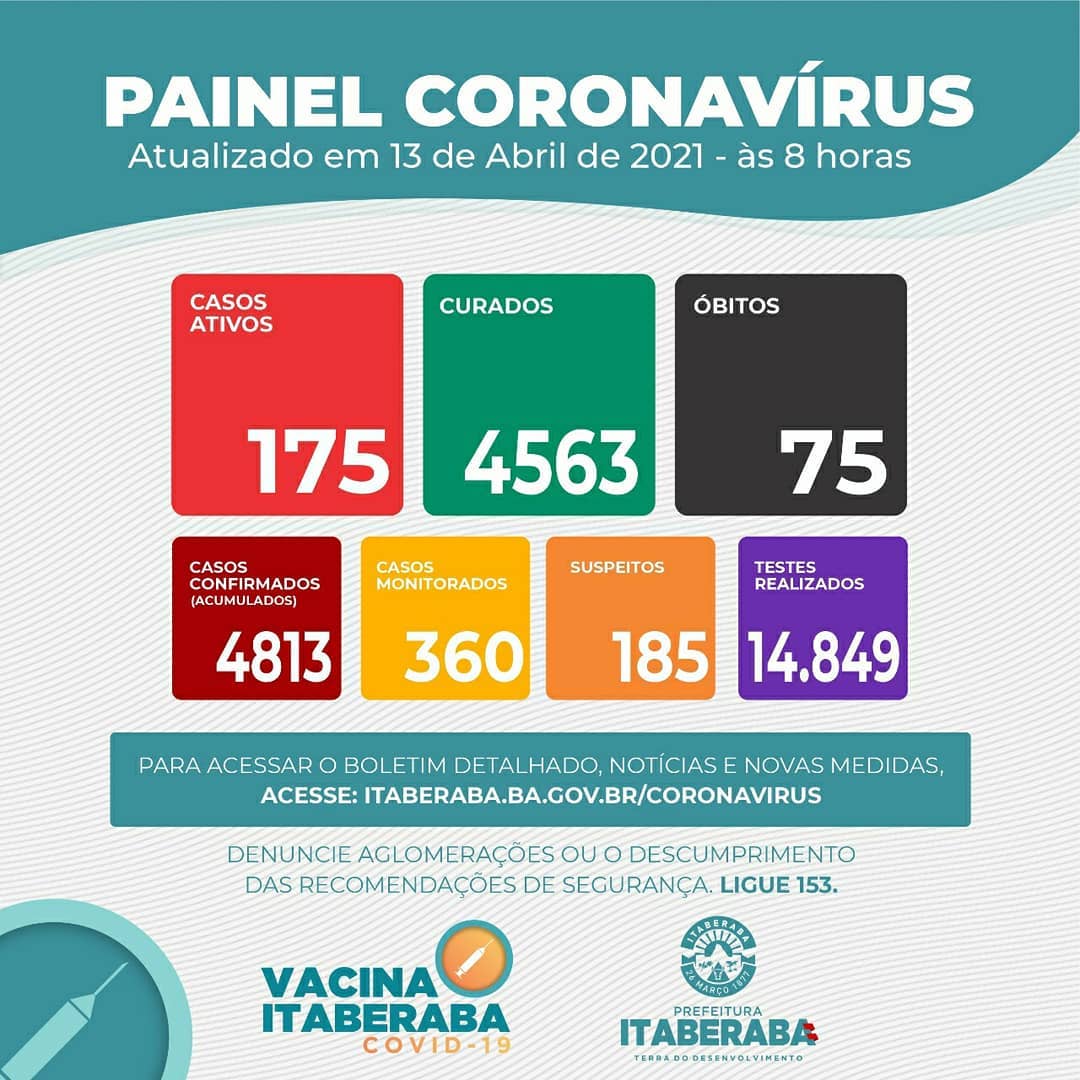 Itaberaba continua contabilizando grandes quantidades de casos da Covid-19 no município.