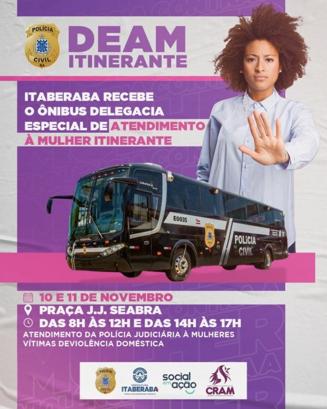 O município de Itaberaba recebe, nesta quarta e quinta-feira, o ônibus Delegacia Especial de Atendimento à Mulher Itinerante.
