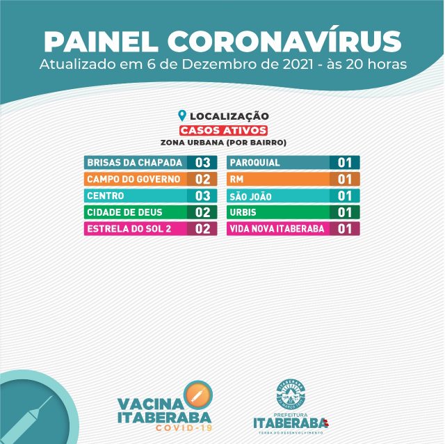 A Prefeitura de Itaberaba, por meio da Secretaria Municipal da Saúde, informa o boletim diário de segunda-feira (06) com dados consolidados até as 17h.
