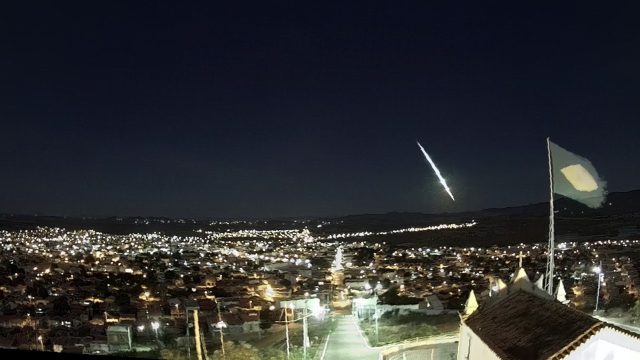 Um meteoro cruzou o céu de Itaberaba, na noite desta segunda-feira (19). O evento astronômico foi observado em diversas cidades na Bahia e registrado por câmeras do Clima ao Vivo.