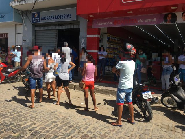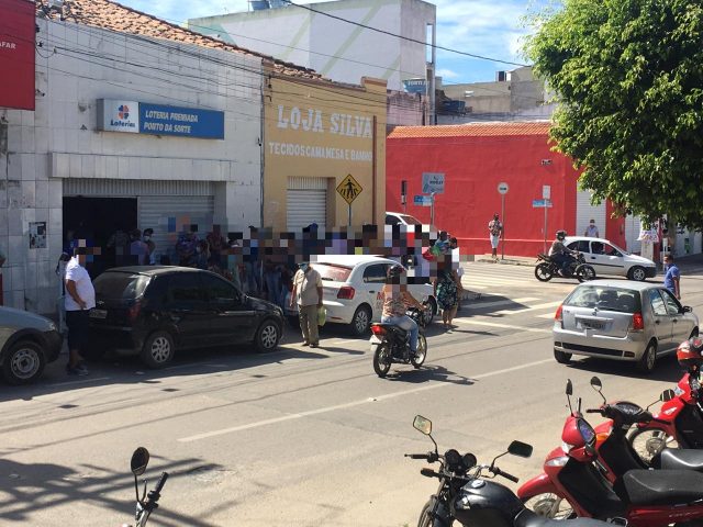As Lotéricas, que deveriam reabrir só na próxima segunda-feira (06), já estavam em funcionamento neste primeiro dia, com longas filas.