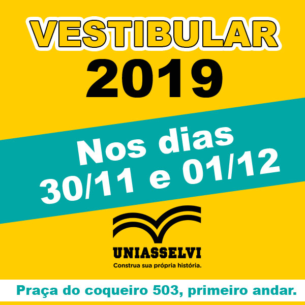 Acontece nos próximos dias 30 de novembro e 01 de dezembro, o Vestibular UNIASSELVI 2019, no Polo Itaberaba.