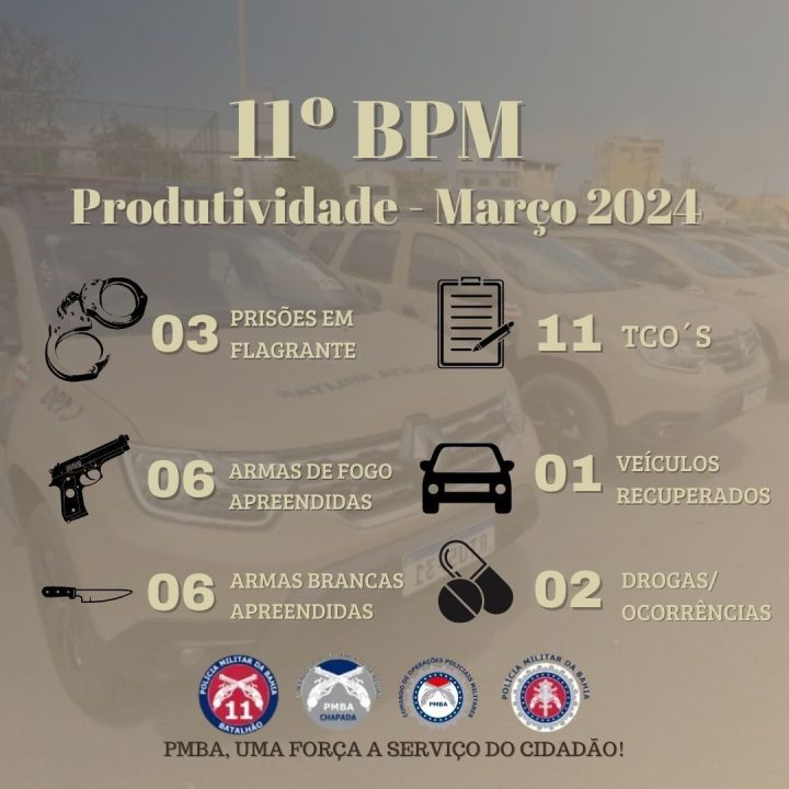 O 11º BPM divulgou, na manhã desta terça-feira (02), o balanço operacional referente ao mês de março, na região de Itaberaba.