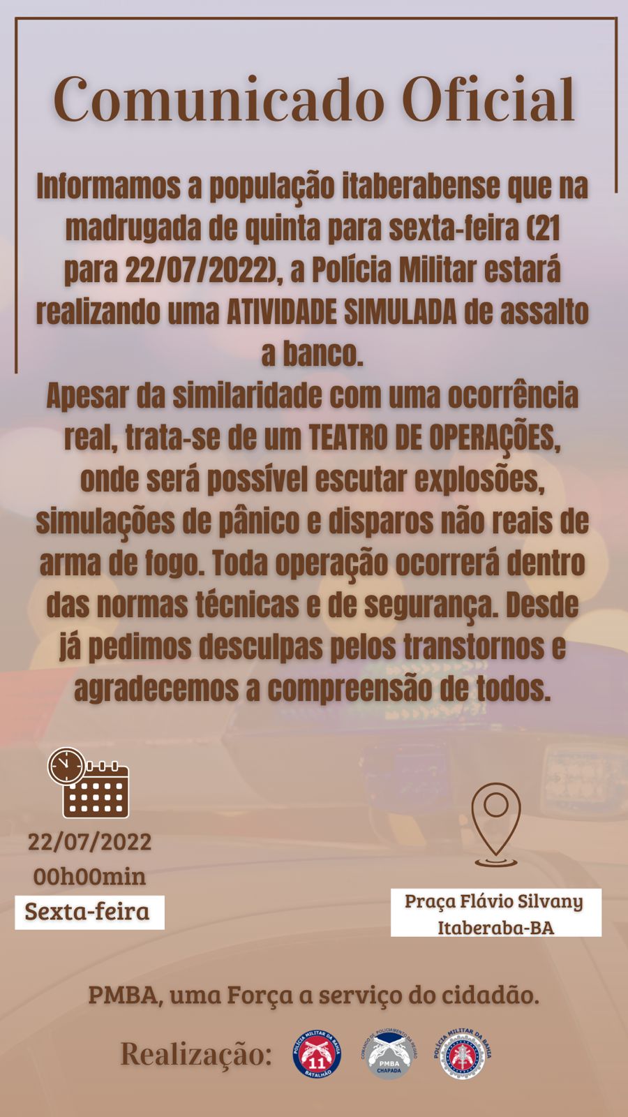 Confira o comunicado emitido pela 11º BPM-Itaberaba: