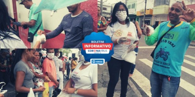 A Prefeitura de Itaberaba, através da ação intersetorial das secretarias municipais de Ação Social e Cidadania (Seas) e de Saúde (Sesau), está ampliando as medidas de combate ao novo coronavírus (COVID-19) com a distribuição gratuita de máscaras de proteção no centro comercial do município. As máscaras estão sendo confeccionadas em tecido 100% algodão pelas equipes dos Centros de Referência de Assistência Social (CRAS). A entrega começou nessa segunda-feira (20), quando mais de 500 unidades foram distribuídas nas filas de bancos e casas lotéricas.