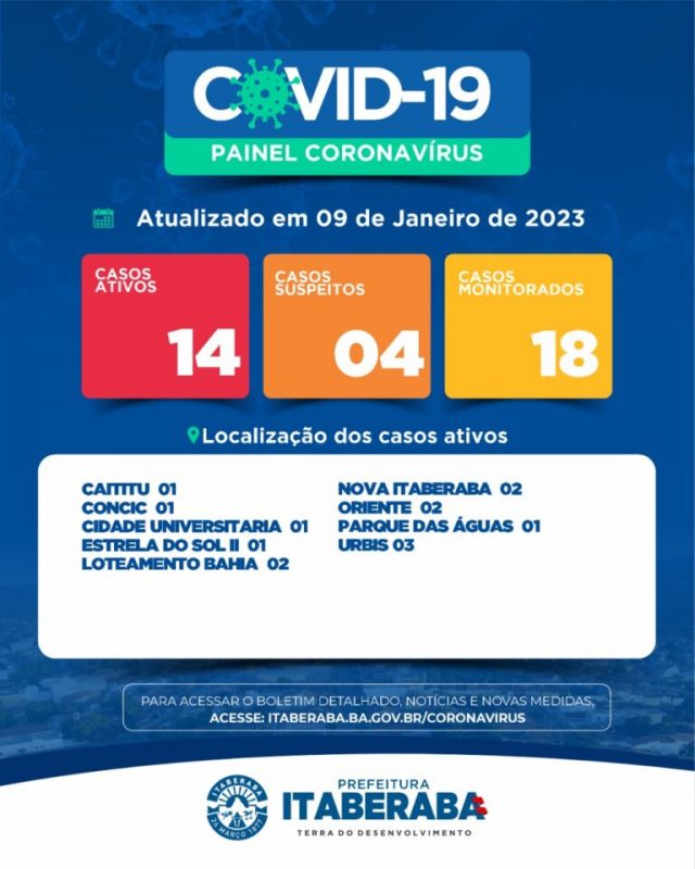 De acordo com o boletim, atualmente Itaberaba tem 14 casos ativos 04 casos suspeitos, 18 casos monitorados.
