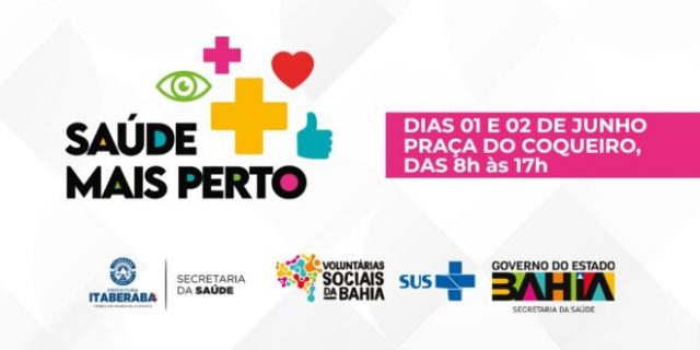 A Prefeitura de Itaberaba em parceria com Secretaria da Saúde da Bahia (SESAB) e Voluntárias Sociais da Bahia realizam nos dias 01 e 02 de junho a Feira Cidadã, com o projeto “Saúde Mais Perto”, ação que leva atendimento médico e serviços diversos para áreas de difícil acesso, proporcionando cuidados de saúde e bem-estar para a população.