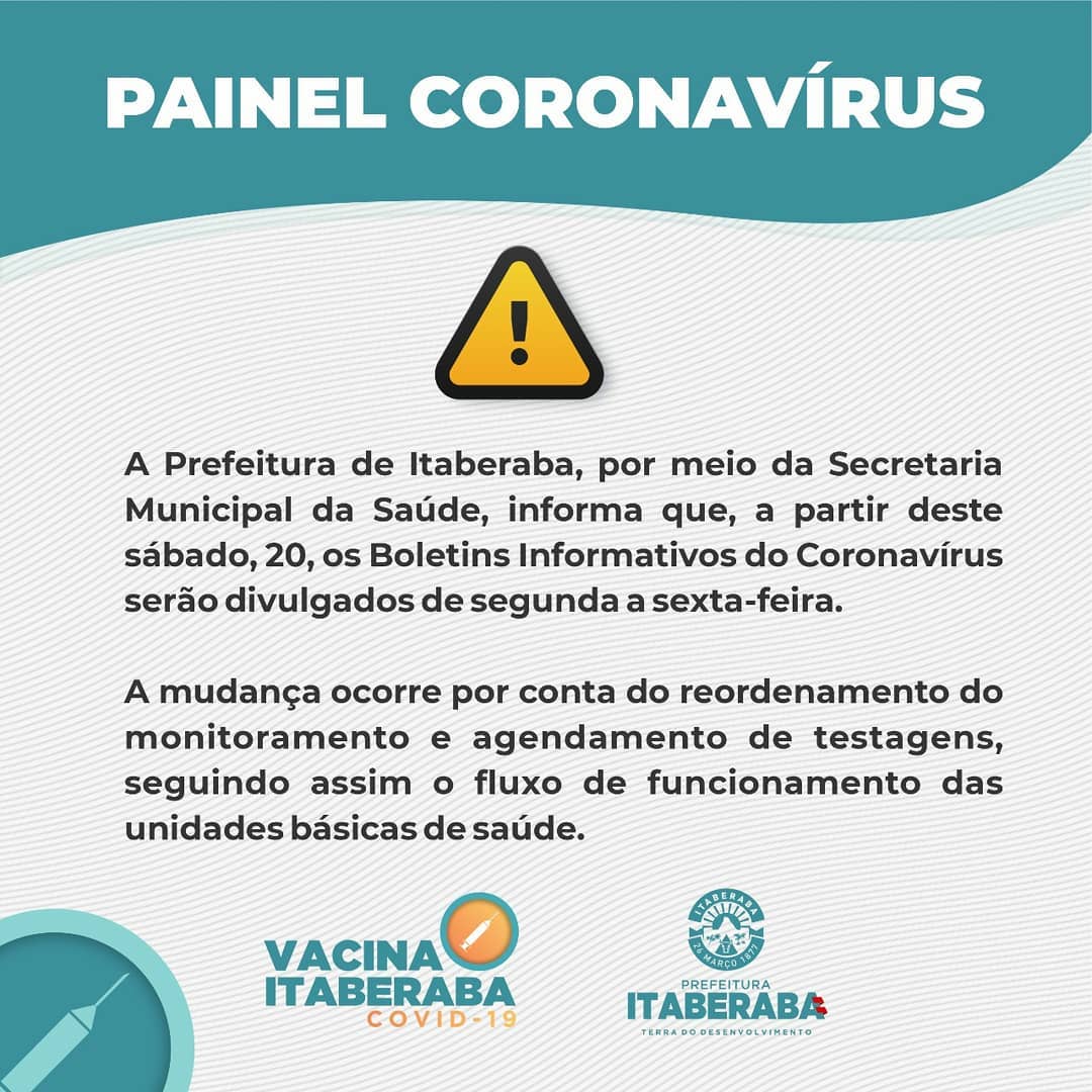 A prefeitura de Itaberaba realizou mudanças na publicação dos boletins diários dos casos de coronavírus no município.