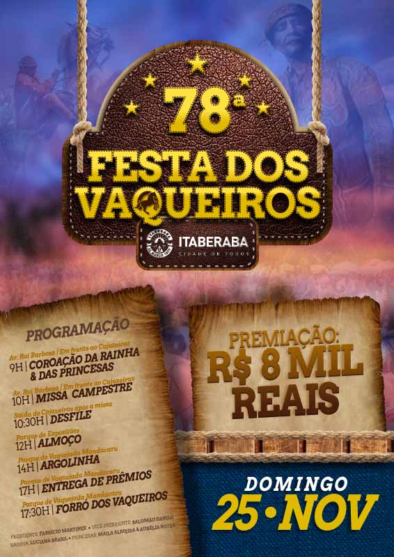 A prefeitura divulgou nesta terça-feira (06) a programação da 78ª Festa dos Vaqueiros de Itaberaba.