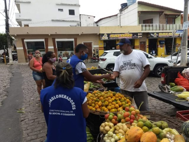 A ação, que consistiu na distribuição de máscaras de proteção, confeccionadas em tecido 100% algodão pela equipe do centro Municipal de Qualificação Profissional e Social (CMQPS), foi realizada na Praça Miguel Brito (antigo Coqueiro) e teve como público-alvo trabalhadores ambulantes e moto taxistas que também receberam material educativo com informações sobre a necessidade da implantação de uma nova cultura para a prevenção de acidentes de trabalho e doenças ocupacionais.