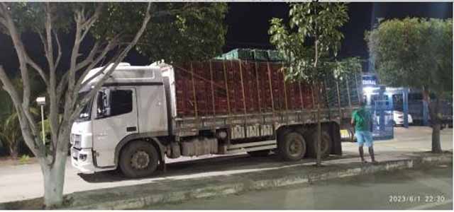 Nesta quinta-feira (01), no Km 225 da BR 242, em trecho do município de Itaberaba (BA), policiais rodoviários federais abordaram uma carreta M.Benz/Atego, carregada com 500 caixas de tomate e pimentão.