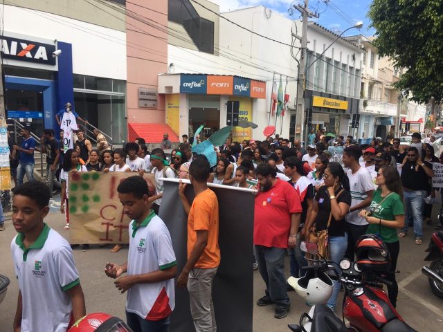 Professores e estudantes de Itaberaba se reuniram em uma passeata, na manhã desta quarta-feira (15), no Centro da cidade, em protesto contra o bloqueio de recursos da educação anunciado pelo MEC e contra a reforma da previdência. A manifestação faz parte de um ato nacional.