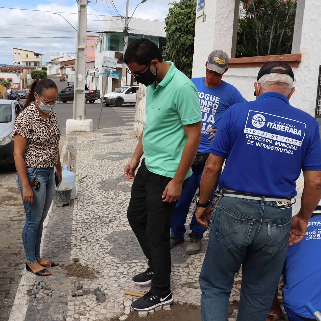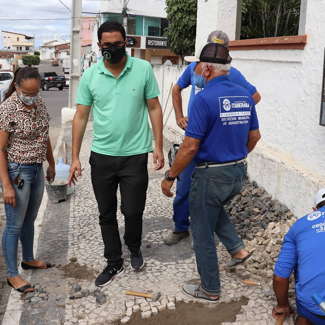 A obra esta sendo realizada pelo município para recuperação do piso de pedra portuguesa.