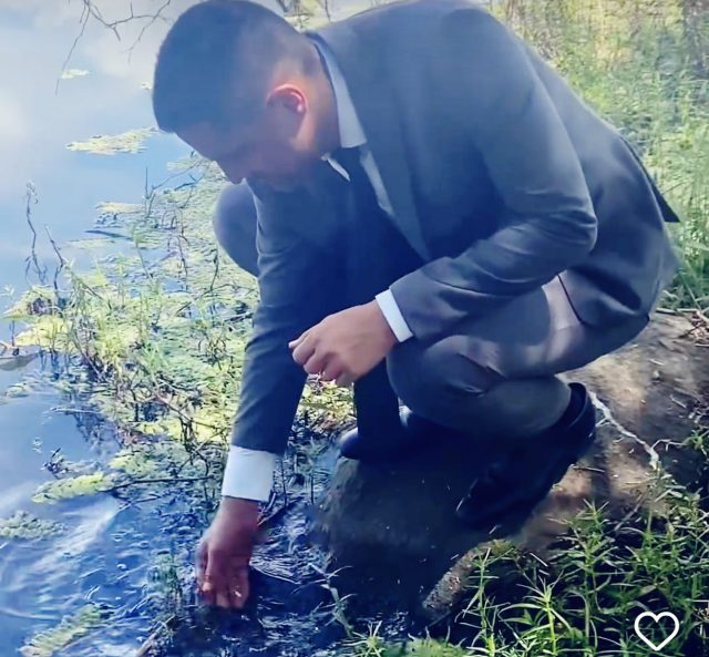 Em ato simbólico, Ricardo Mascarenhas plantou uma arvore de umbuzeiro e tocou nas águas do Açude Juracy Magalhães.