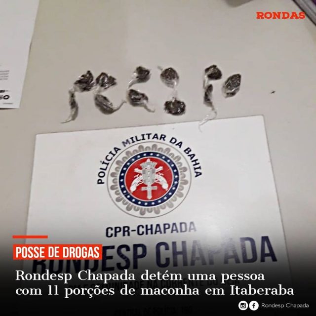 Uma pessoa foi presa com 11 porções de maconha na tarde desta terça-feira (16) em Itaberaba.