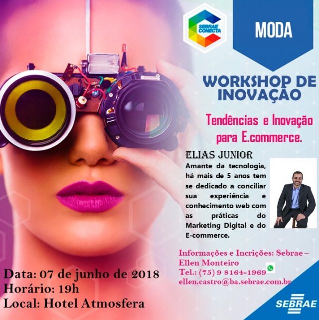 Já na quinta-feira, dia 7, acontece o Workshop de Inovação “Tendências e Inovação para e-commerce”. O tema será apresentado pelo palestrante Elias Junior, amante da tecnologia e que vem se dedicando há mais de cinco anos ao marketing digital, e-commerce e conhecimentos web. O encontro será realizado no auditório do Hotel Atmosfera, a partir das 19h.