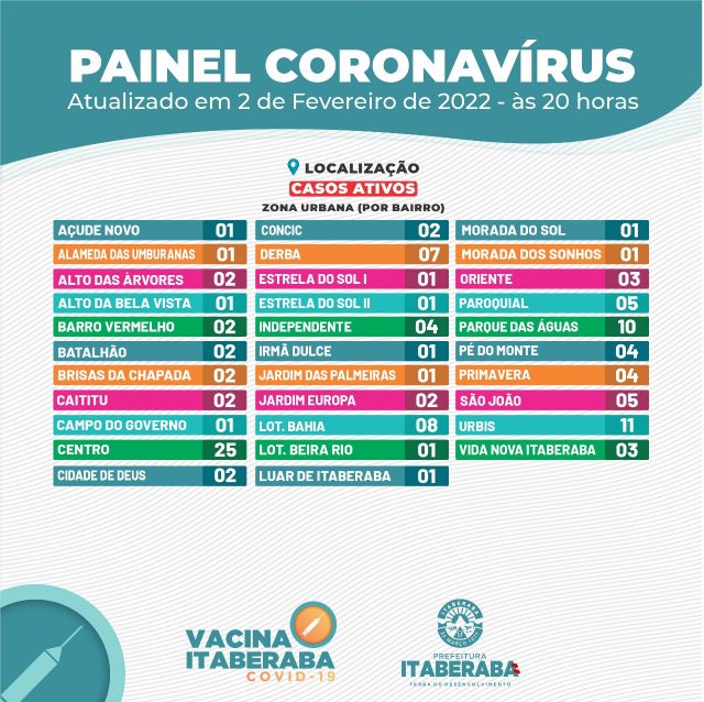 Desde o inicio da pandemia, Itaberaba já contabilizou 8.123 casos confirmados de Covid, 7.877 casos recuperados e 129 óbitos.