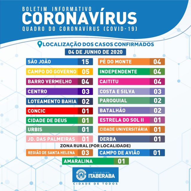 As informações são do Boletim Epidemiológico divulgado nesta tarde pela prefeitura de Itaberaba.