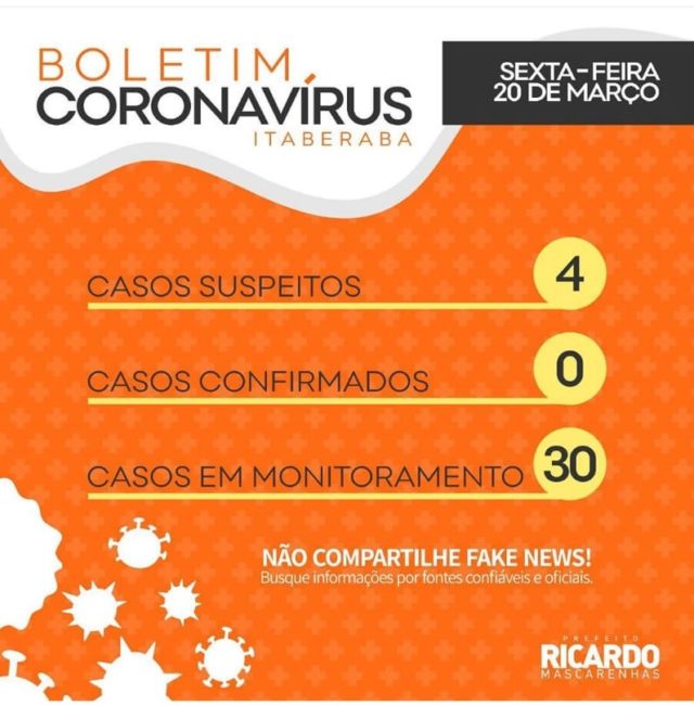 O prefeito Ricardo Mascarenhas, divulgou na noite desta sexta-feira(20), um novo boletim sobre a evolução do Coronavírus na cidade de Itaberaba.
