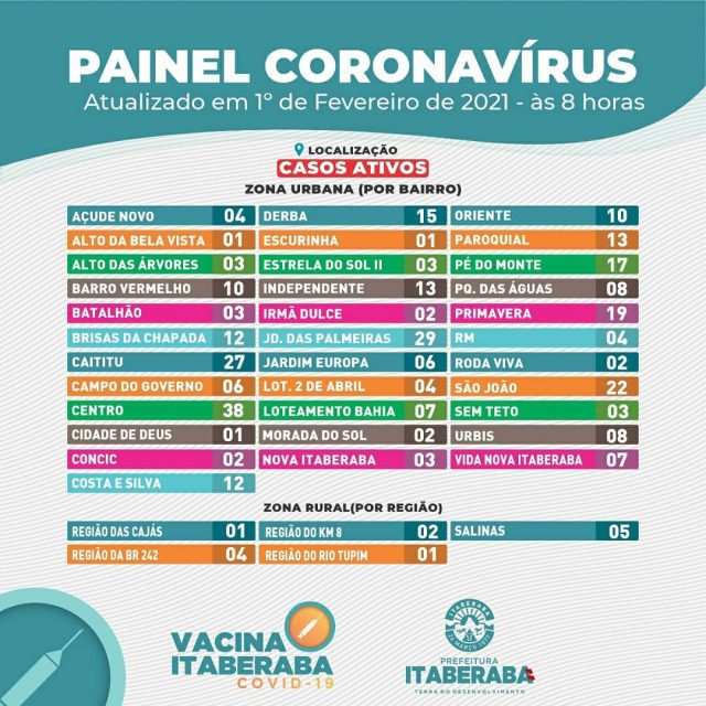 A prefeitura de Itaberaba atualizou o boletim epidemiológico  dos casos de Coronavírus no município.