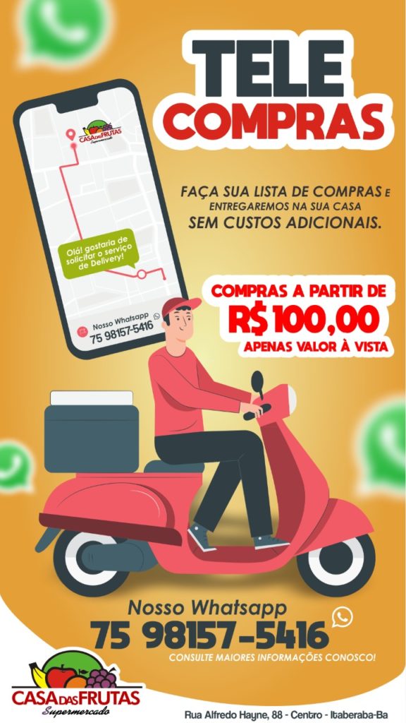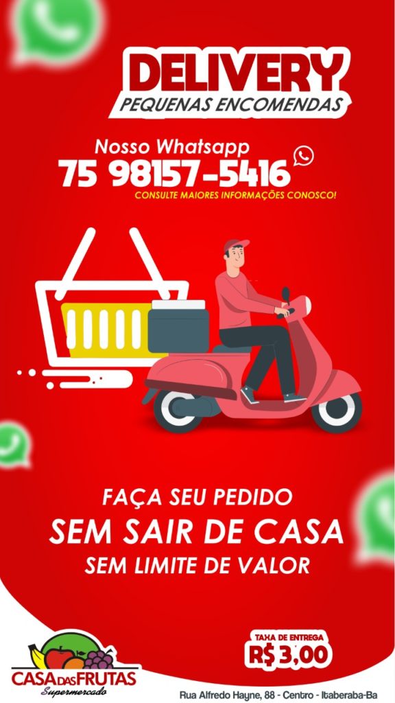 O Delivery, da Casa das Frutas, no momento está atendendo apenas o território dentro da cidade de Itaberaba.