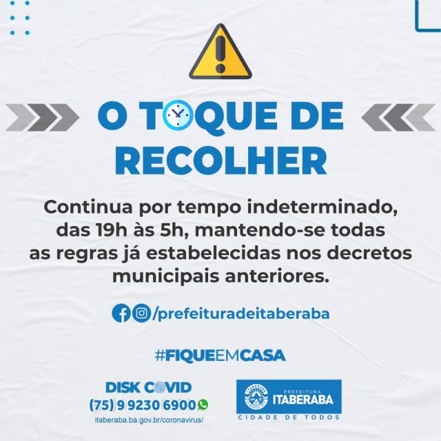 Está valendo, por tempo indeterminado, todas as regras estabelecidas para o Toque de Recolher no município de Itaberaba.