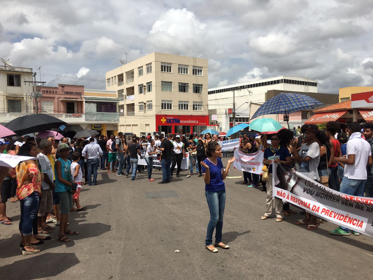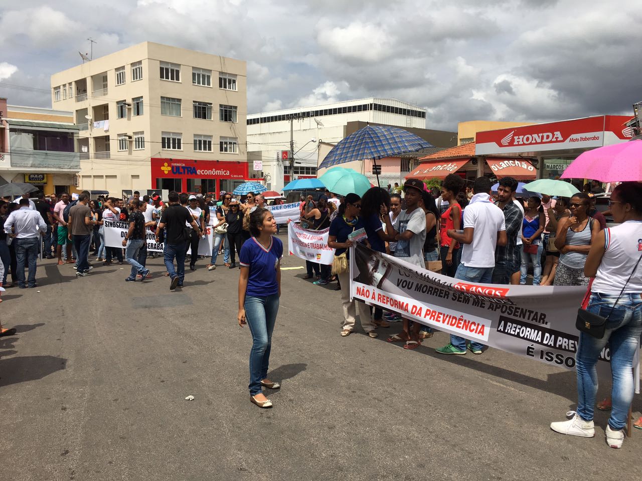 A população de Itaberaba se concentrou no centro da cidade na manhã desta sexta-feira para protestar contra a reforma da previdência.