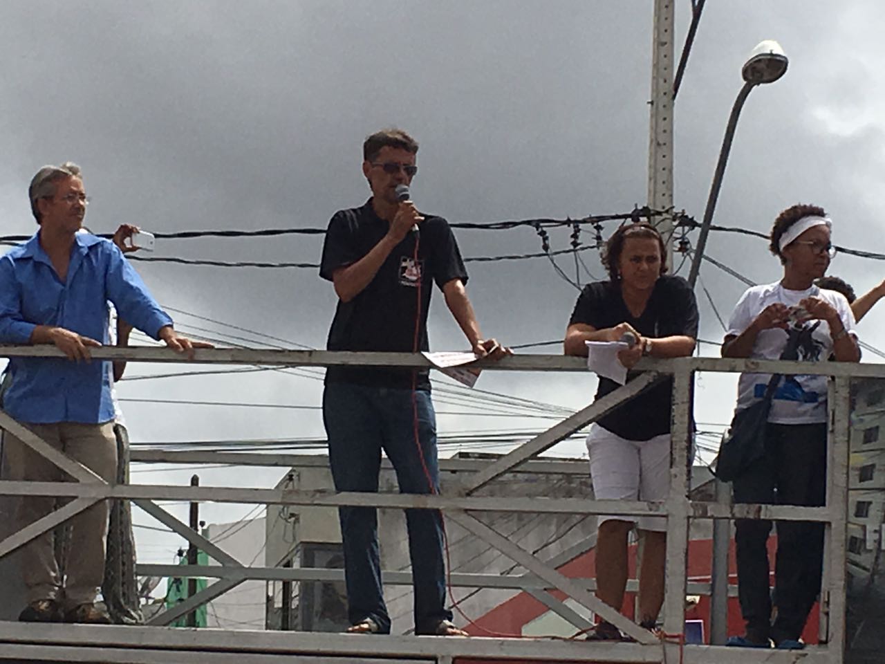 O movimento teve inicio nas primeiras horas da manhã na avenida Ruy Barbosa e seguiu até à praça Flavio Silvany,  onde representantes de diversos setores e centrais sindicais se manifestaram.