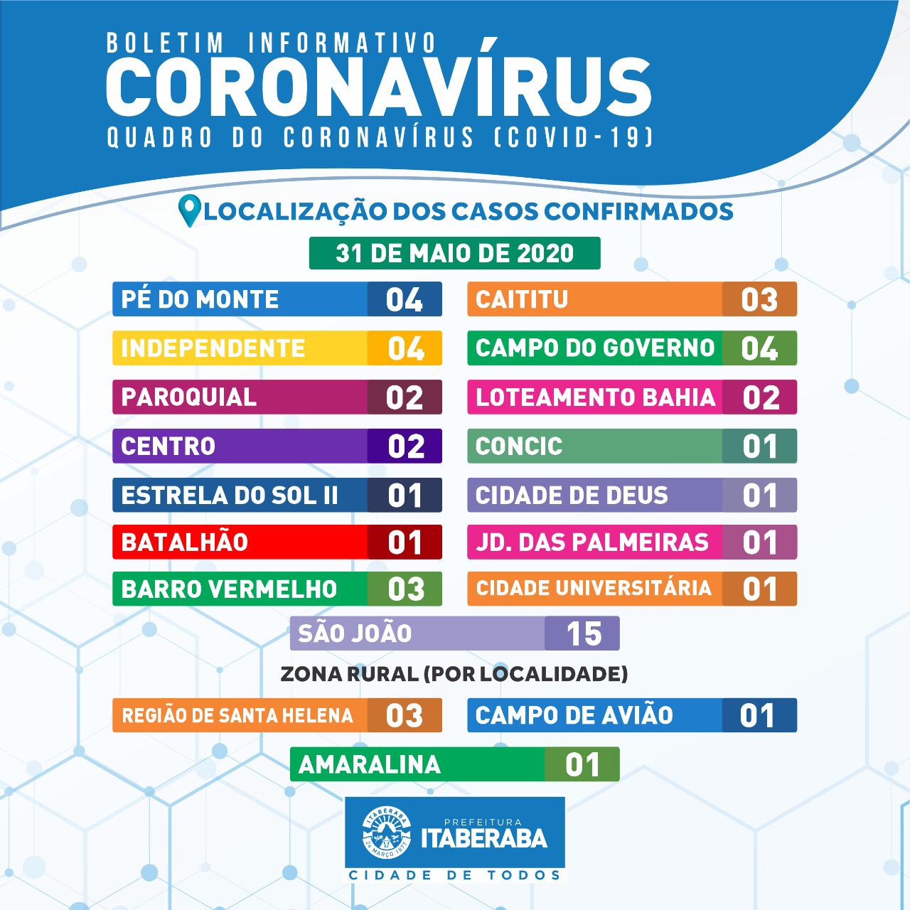 Urgente, Itaberaba confirma 40 casos positivos de coronavirus, bairro São João tem 15